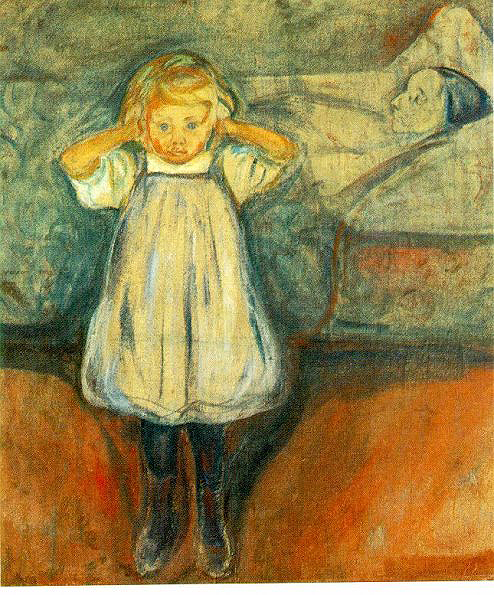 دوران کودکی او توأم با فشار و بیماری، بر روحیاتش تأثیر زیادی گذاشت، از این روی بسیاری از تابلوهای ادوارد مونک بر محور درد و بیماری و با موضوع یک زن و مرد شکل گرفتهاند. مونک هنرمندی به شدت «شخصی» بود که حال و هوای او در آثارش در دورههای مختلف متجلی شدهاند. خودنگارههای او در دورههای گوناگون، احوال روحیاش را که غالباً «ملتهب» بود ثبت کردهاند.