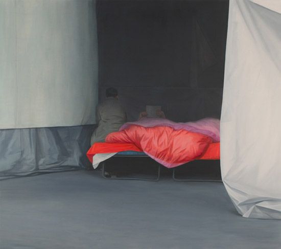 باید به آدم های تک و تنهای تاریک گم و گور شده در چشم اندازهای مملوء از مه نگاه کنیم؛ یا بیایید به تلنباره های لباس یا کیسه زباله ها یا خورشیدهای تیره و تار در افق های روشن نگاه کنیم، یا باید به برهوت های بی بازگشت یا زوایای دیوارها نگاه کنیم، گاه فقط زوایای دو دیوارِ به هم رسیده، گاه با دو کلاغ پای دیوار، گاه با خطوطی دیگر درآمیخته، دیگر اهمیت چندانی ندارد چون به هر حال شما، حالا، به آثاری نسبتا ابدی ازلی از "تیم ایتل" نظر انداخته اید.