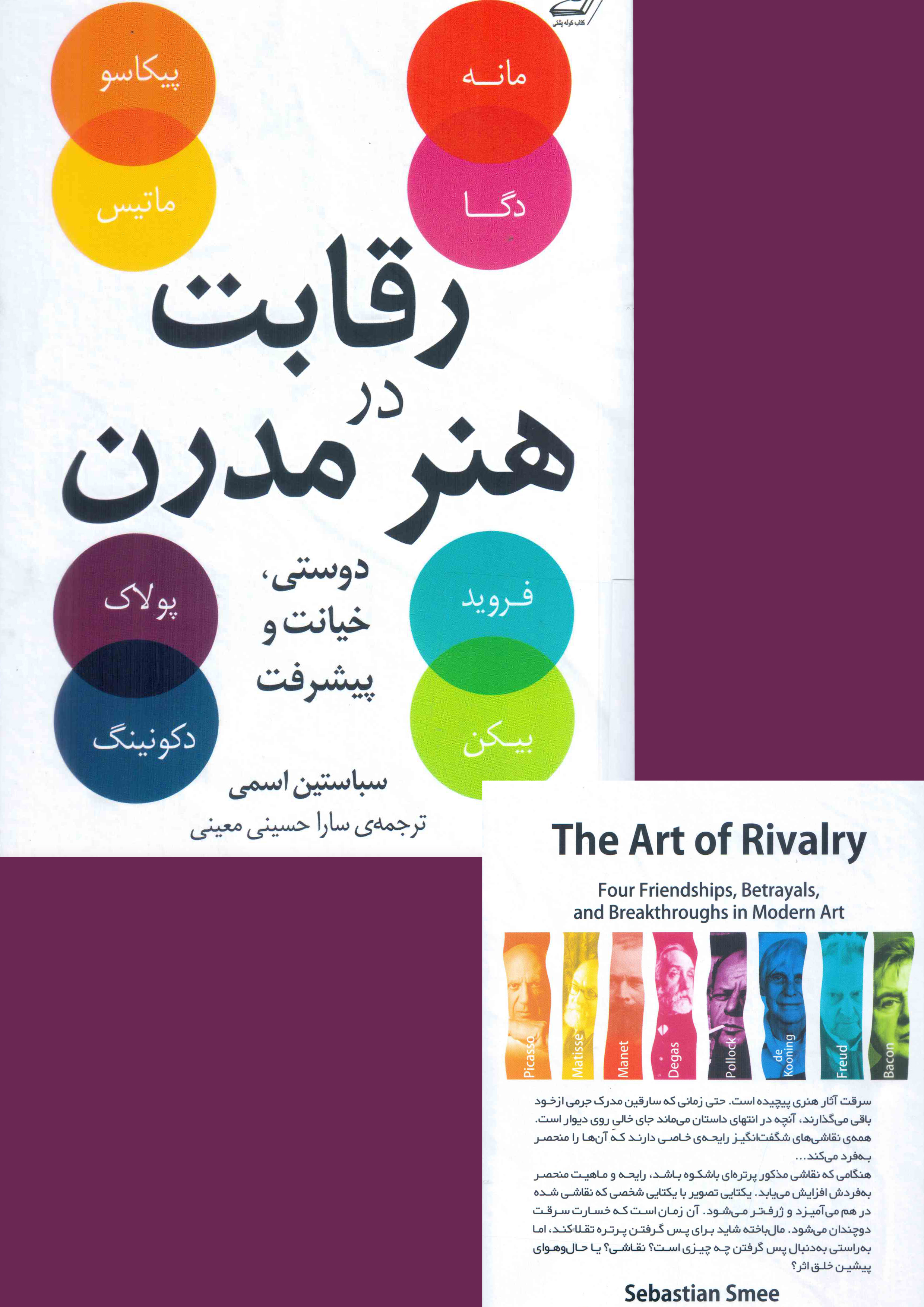 "سباستین اسمی"، (Sebastian Smee9 منتقدِ هنری که دریافت جایزه ی پولیتزر در کارنامه خود دارد، در کتابِ "رقابت درهنرمدرن" داستان چهار رابطه مشهور هنری را در چهار بخش روایت میکند "بیکن و فروید"، "مانه و دگا"، "ماتیس و پیکاسو"، "پولاک و دکونینگ" در هر بخش دو شخص با خلقوخویی متفاوت به سمت یکدیگر جذب میشوند. هر دو هنرمند در آستانه خلق شاهکارهای اصلی خود هستند. هر یک تا کنون پیشرفتهای چشمگیری داشتهاند. اما هیچ سبک برجستهای هنوز بهوجود نیامده است. تنها استعداد وجود دارد. رقابت در قلب رابطه ثمربخش این هنرمندان است؛ البته نه از جنس رقابتی که بین دشمنان قسمخورده، رقیبان سرسخت و کینهتوز است، رقابتی که ریشه در دوستی، عشق و تحسین دارد.
