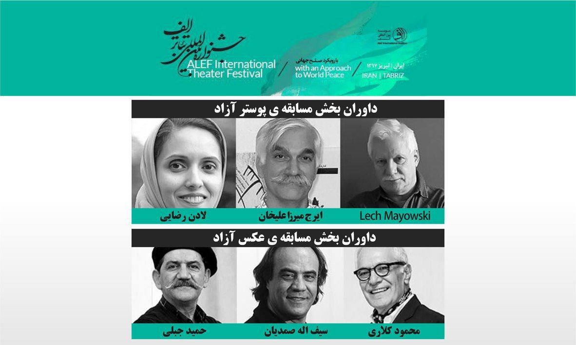 همچنین گروه داوری بخش مسابقه پوستر جشنواره بین المللی تئاتر «الف» متشکل از لخ مایفسکی، ایرج میرزاعلی خانی و لادن رضایی نیز کاندیداهای این بخش را بدون ترتیب اولویت به این شرح معرفی کردند: سیامک توده، علیرضا معظمی، داریوش الهیاری.