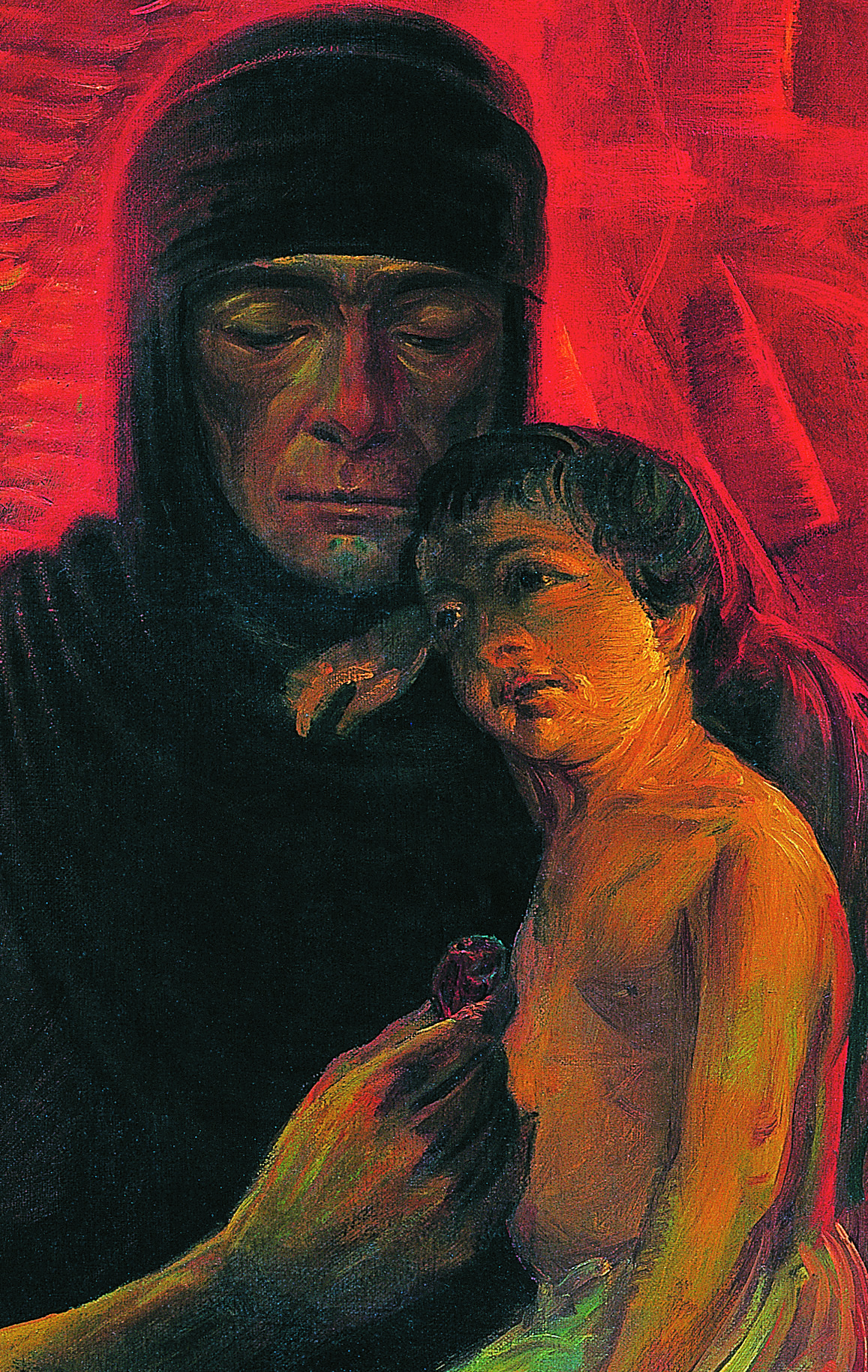 در این تابلو رنگ های قرمز و نارنجی در کنار آبی ها و خاکستری ها ترکیب مناسبی را به وجود آورده است. استفاده از رنگ قرمزِ درخشان که نمادی از خون شهداست به جا و چشم گیر است و مفهومِ ذهنیِ نقاش را به بیننده منتقل می کند.