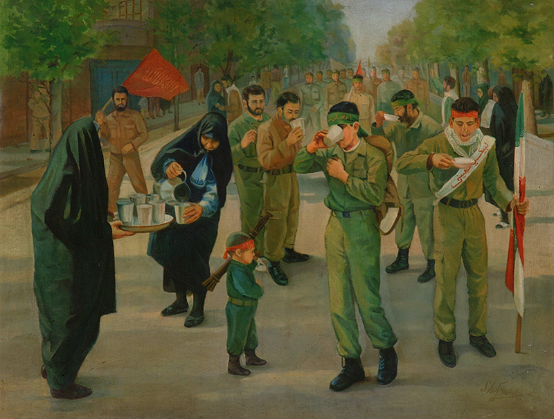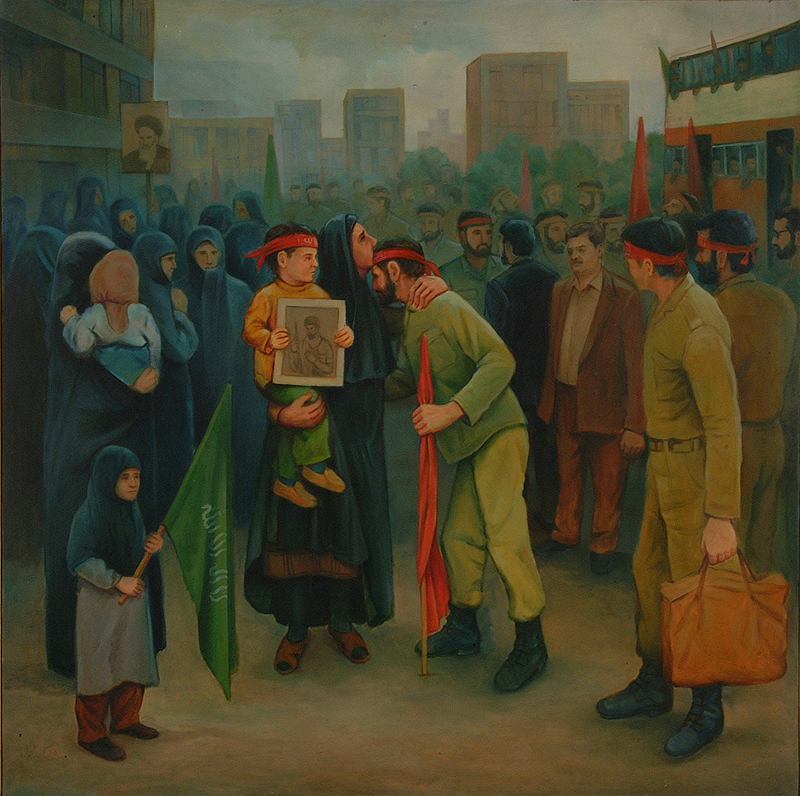 نگاهی به یک لحظه ساده. اتفاقهایی که شاید به راحتی از کنارشان عبور میکنیم. گویی در ثانیه ای بعد همه عناصر جای خود را تغییر میدهند. نقاشی صادقانه بدون تکلف. این ها همه مشخصه های کار حسن رزمخواه در مجموعه نقاشی های جنگ اوست. رزمخواه که جوانی خود را در زمان جنگ سپری کرده است، به گوشه هایی از جنگ اشاره میکند که شاید ساده باشد اما این سادگی بر هنرمند نقاش پوشیده نیست.