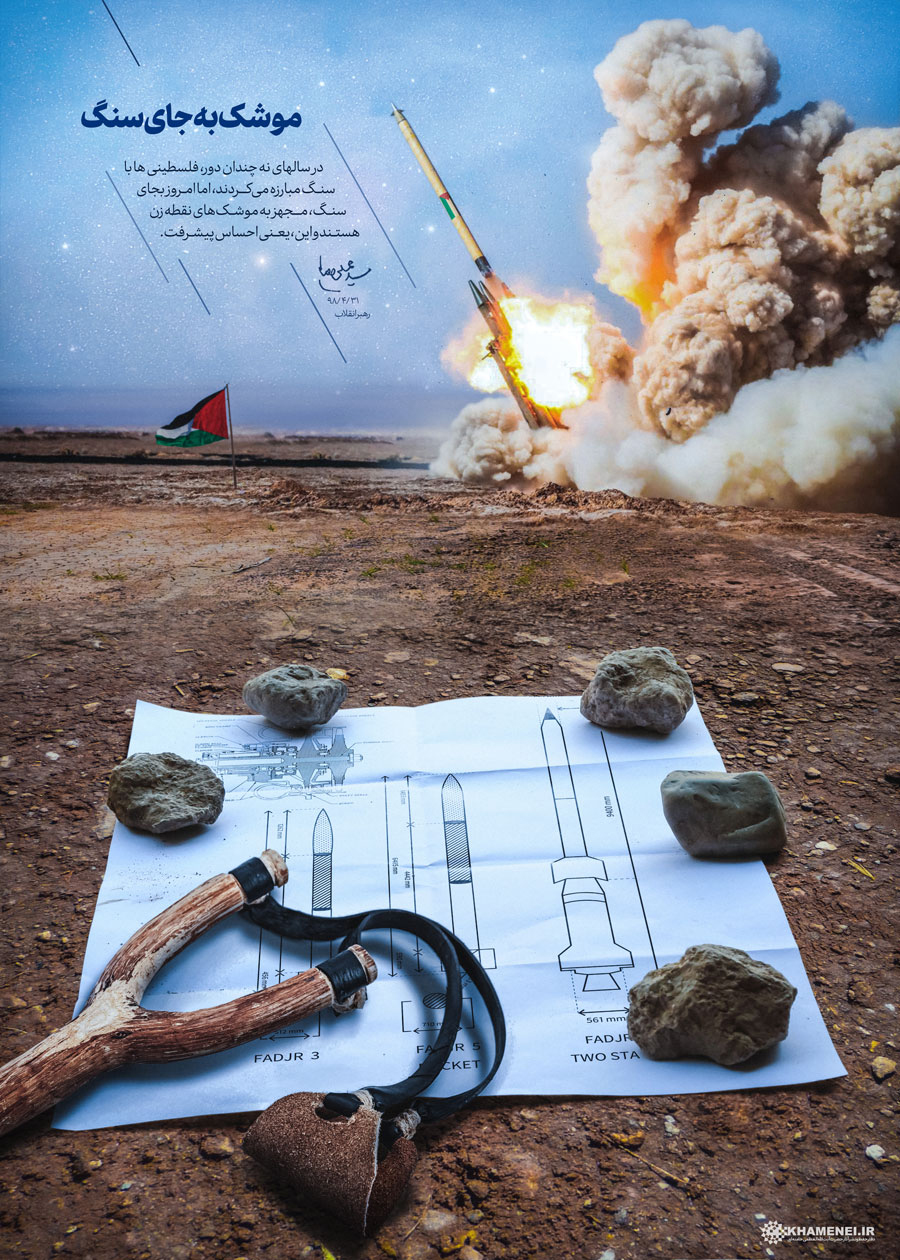 دفتر حفظ و نشر آثار مقام معظم رهبری پوستری را با عنوان «موشک به جای سنگ» طراحی و منتشر کرد.