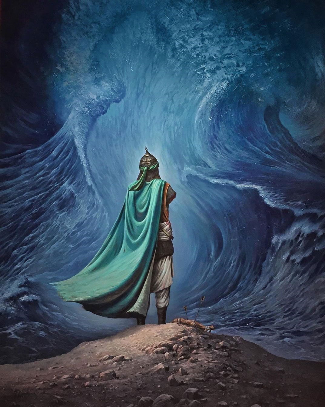 نقاشی عاشورایی جدید محمود آزادنیا درباره قمر بنیهاشم؛ حضرت ابالفضل العباس(ع) رونمایی شد.