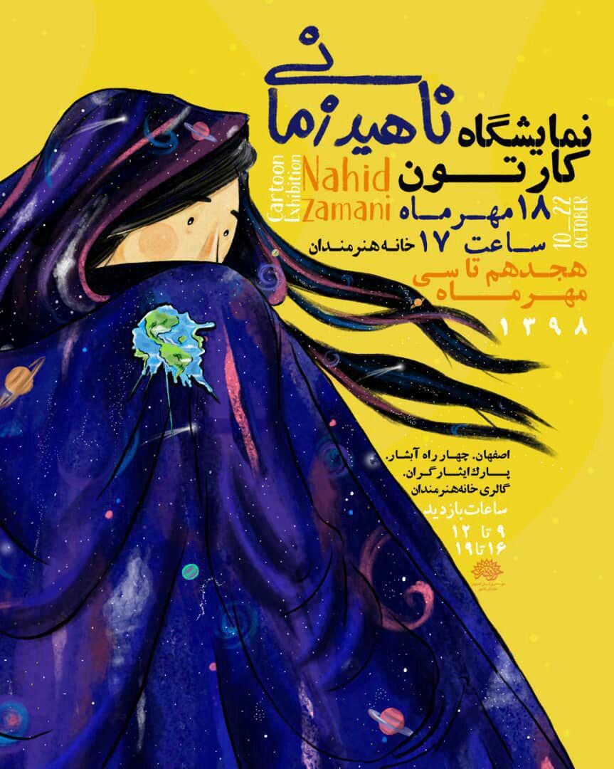 گفتنی است، نمایشگاه کارتون ناهید زمانی در ساعت 17 روز پنجشنبه 18مهر 98 در گالری خانه هنرمندان اصفهان افتتاح و تا 30 مهرماه جهت بازدید عموم ادامه خواهد داشت.